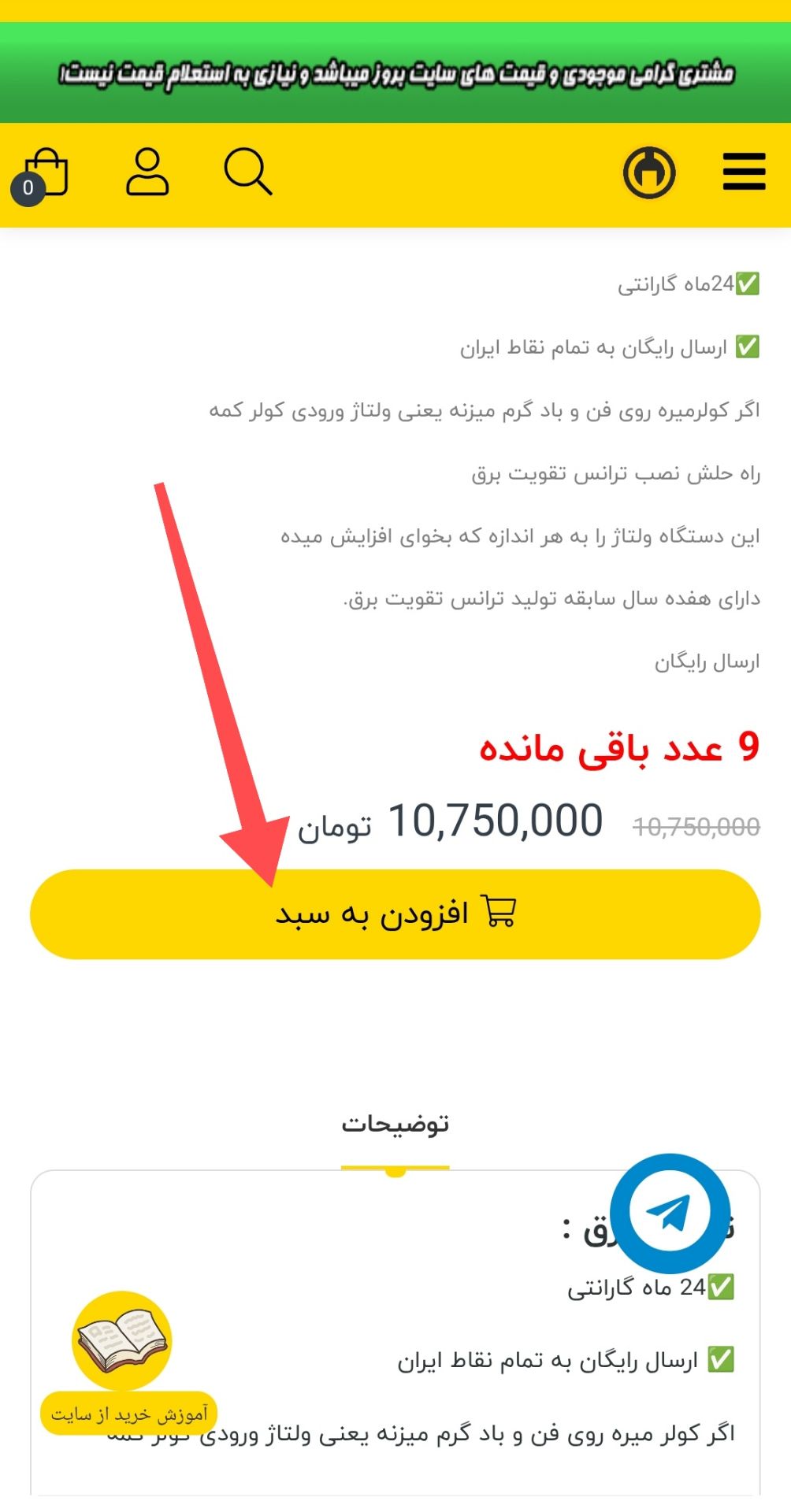 1- ابتدا بر روی دکمه افزودن به سبد کلیک کنید.
