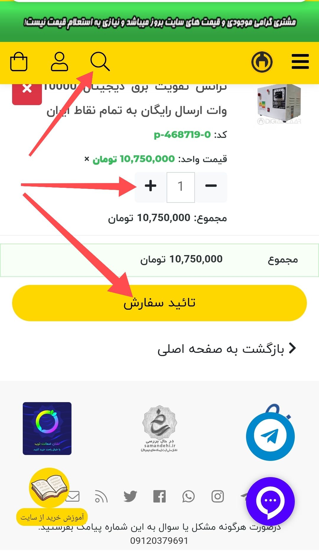 برای خرید از سایت ابزار عربشاهی کافیست مراحل زیر را دنبال کنید و در صورت هر گونه مشکل میتوانید با پشتیبانی تماس یا از قسمت چت آنلاین در گوشه پایین صفحه سمت راست سوالتون رو بپرسید.