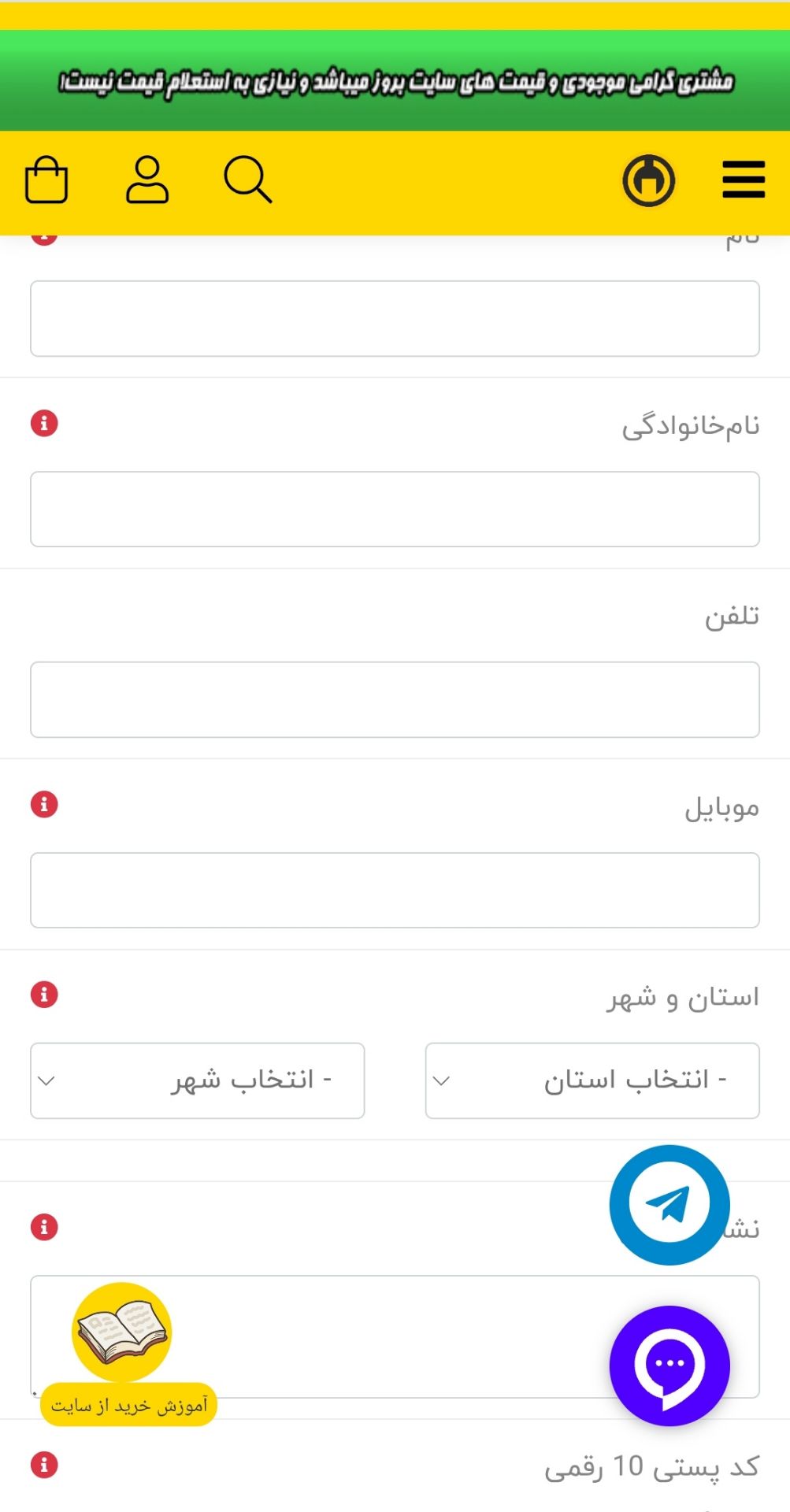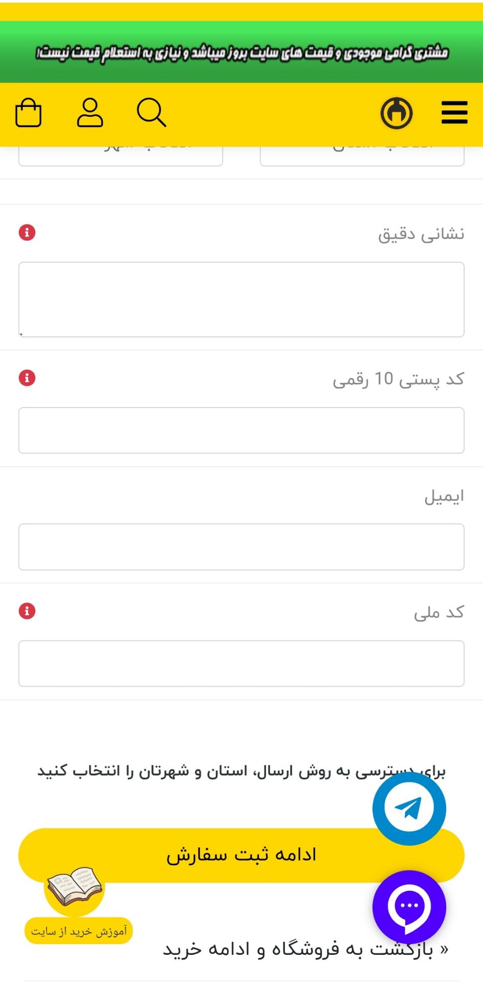 4- مشخصاتتون رو بصورت صحیح و تا جایی که ممکن هست کامل وارد کنید و دکمه ادامه سفارش رو کلیک کنید.