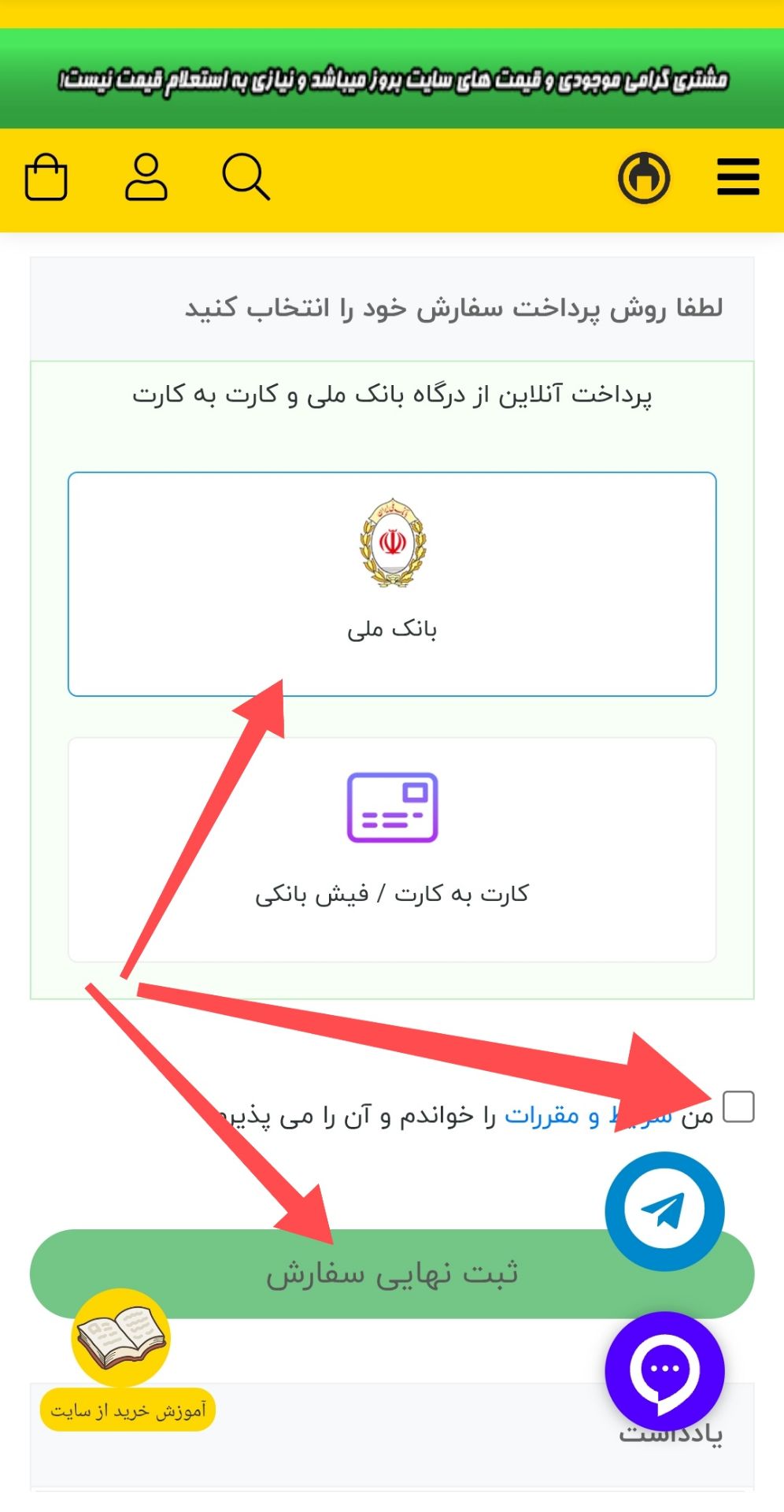 3) بر روی ثبت نهایی سفارش کلیک کنید تا به درگاه پرداخت بانکی هدایت شوید و بعد از پرداخت، ثبت سفارش تکمیل میگردد.