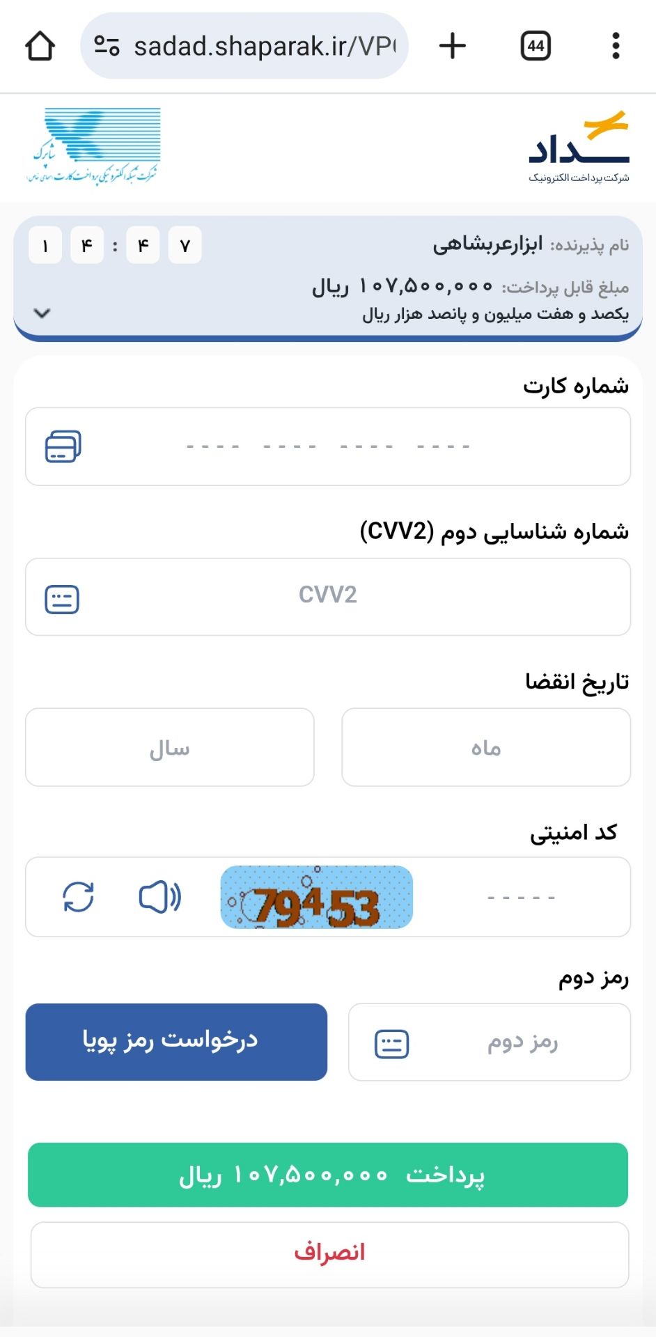 6-در مرحله پایانی اطلاعات کارت بانکی خود را وارد کرده و بر روی دکمه پرداخت کلیک کنید تا سفارش شما تکمیل گردد.