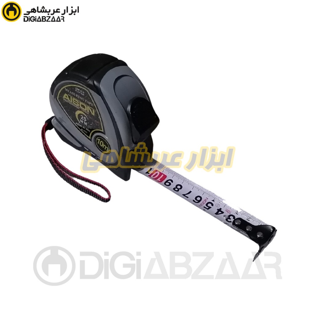متر ۱۰ متری آیسون (AISON) مجهز به تیغه یا نوار ۱۰ متری است که با استفاده از پوشش نایلونی جهت محافظت بیشتر روکش شده است. بدنه پلاستیکی متراز مقاومت بالایی در برابر ضربه برخوردار است که عمر طولانی این ابزار دستی را تضمین میکند.