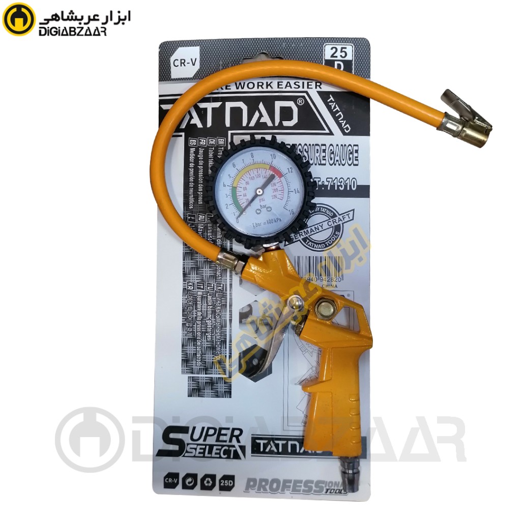 از ابزار پر کاربرد در دنیای امروزی میتوان به تفنگی باد تاتند جهت اندازه گیری میزان باد انواع تایر و یا باد کردن آنهاست. تفنگی باد گیج دار تایر (TATNAD) «تاتند» را ملاحظه میکنید. این تفنگی گیج دار تحت عنوان مدل (ART :71310) به بازار عرضه شده است. این محصول امکان باد کردن و اندازه گیری فشار باد لاستیک و تیوپ های مختلف را دارد و قابل استفاده و اتصال به کمپرسورهای هوا است. این ابزار دارای گیج با قابلیت نمایش 0 تا 16 بار بوده و فشار کاری پیشنهادی آن 0 تا 4 بار است. همچنین این تفنگی دارای شلنگ با قابلیت انعطاف پذیری بالا و طول 36 سانتیمتر است. سایز اتصال ورودی این محصول یکچهارم اینچ است و دارای گیج دقیق با حساسیت بالا و مقاوم در برابر لرزش است. وزن بستهبندی این محصول 264گرم و ابعاد آن 12× 29× 2.5 سانتیمتر است.